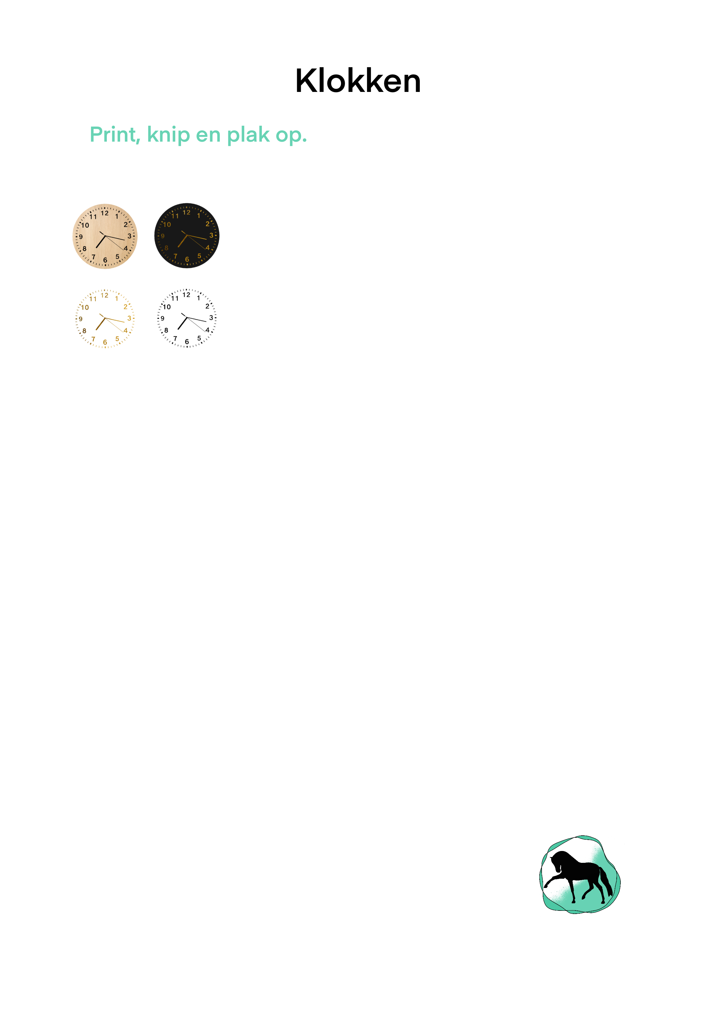 Download het bestand. Print en knip de klok uit die jij wilt. Dan plak je hem op het midden van een knoopje zodat dit de lijst lijkt. Je kunt hem ook op een rond stukje hout plakken. Of meteen op de wand van je diorama.